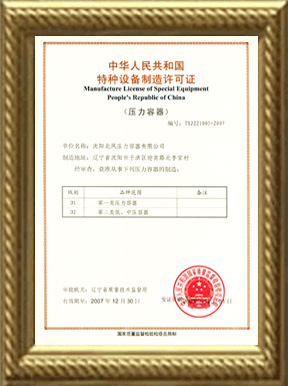 特(tè)種設備設(she)計許可證(zhèng)書(壓力容(róng)器)
